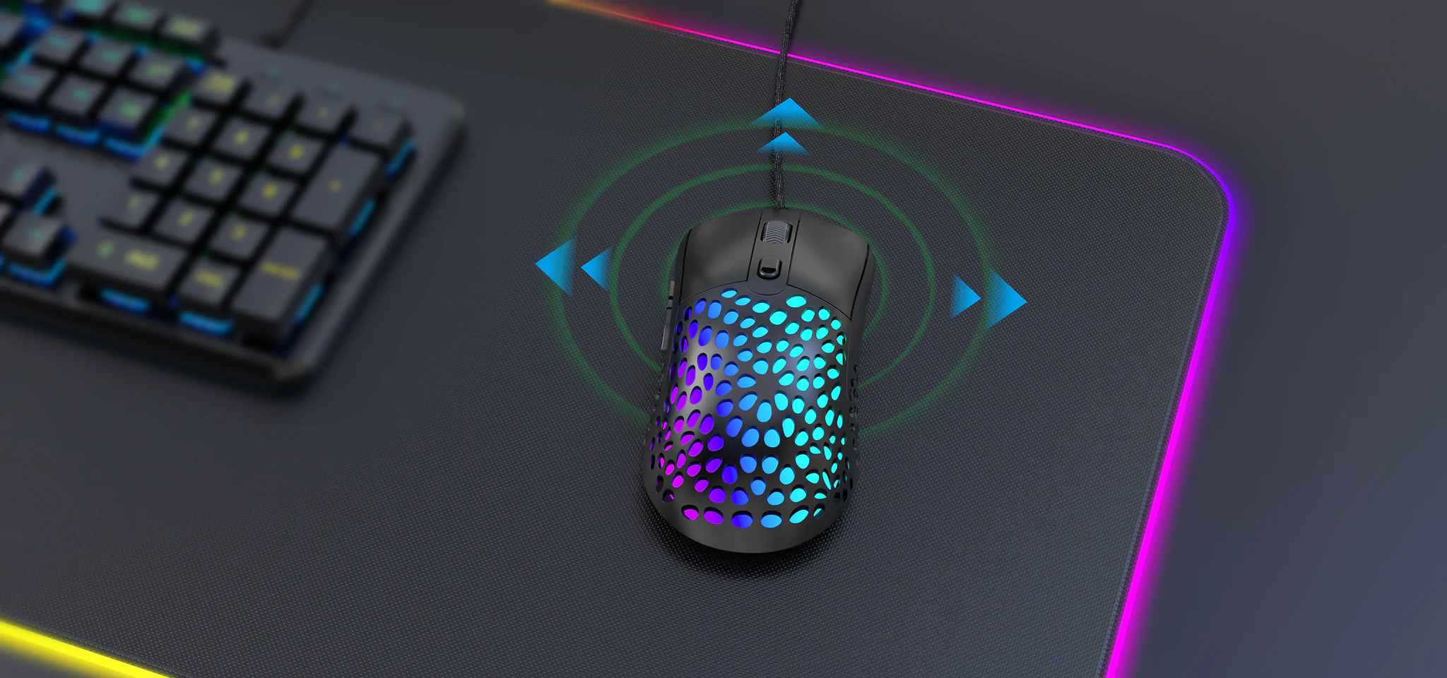 ماوس بازی کامپیوتر سیمی فوق سبک با پوسته لانه زنبوری برای کاهش وزن، افزایش راحتی و افزایش عملکرد طراحی شده است؛