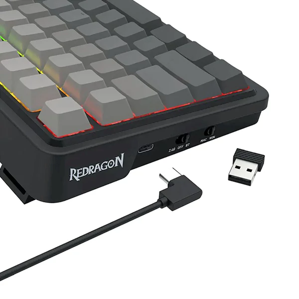 یکی از مهم‌ترین ویژگی‌های کیبورد بی‌سیم مکانیکال گیمینگ ردراگون EISA K686SP RGB RO، انواع اتصال آن است. این دستگاه محدودیت‌های سیم‌ها را از بین برده و به شما سه روش اتصال ارائه می‌دهد: