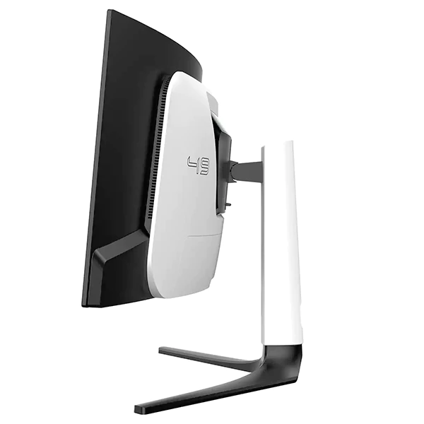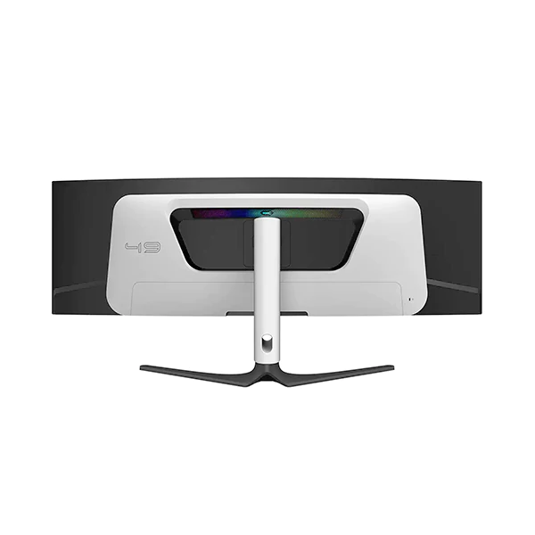 طراحی مانیتور HKC MG49P2U با انحنای R1800 مهندسی شده است. این انحنا با وجود ابعاد بزرگ ۴۹ اینچ، باعث میشود تمام نقاط تصویر در فاصله یکسانی از چشم شما قرار بگیرند و گردن یا چشم شما خسته نشود. پشت دستگاه نیز به سیستم نورپردازی RGB مجهز شده تا فضای اتاق گیمینگ شما را حرفهایتر کند.