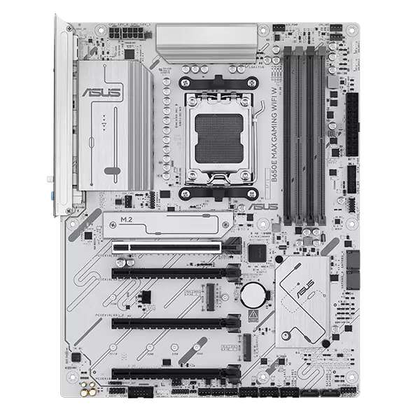 اگر قصد اسمبل یک سیستم گیمینگ یا ورکاستیشن مدرن روی پلتفرم AMD AM5 را دارید و میخواهید هم برای امروز قدرتمند باشد و هم برای ارتقاهای آینده دستتان باز بماند، مادربرد ایسوس مدل MAX GAMING B650 WIFI W یکی از گزینههای جدی در کلاس ATX است. این مادربرد با چیپست AMD B650، پشتیبانی از پردازندههای Ryzen سری 7000 / 8000 / 9000، رم DDR5 تا 256 گیگابایت و سرعتهای اورکلاکشده تا 8000+MT/s، و همچنین اسلات PCIe 5.0 (وابسته به CPU) و درگاههای پرسرعت USB و شبکه، یک پایهی مطمئن برای سیستمهای نسل جدید محسوب میشود.