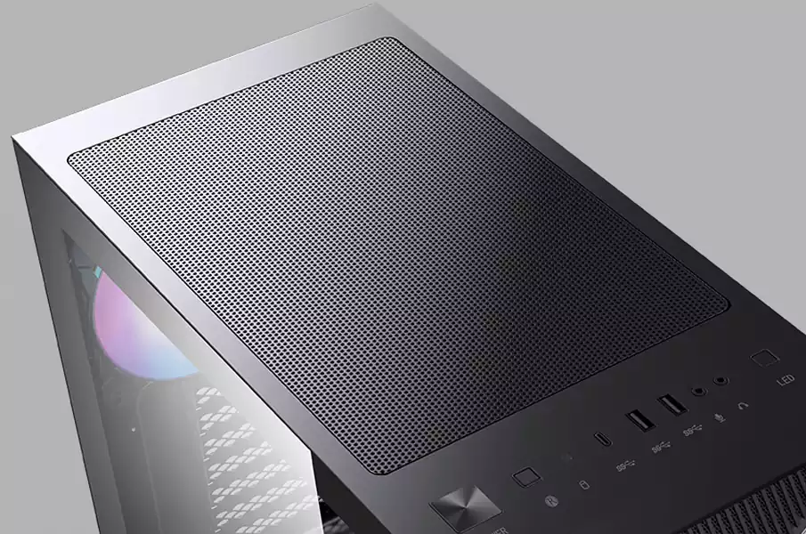 پنل جلویی کیس دسترسی آسان به پورت های ورودی/خروجی مختلف را فراهم می کند. این درگاهها معمولاً شامل پورتهای USB 3.0 و USB 2.0، جکهای صوتی برای هدفون و میکروفون و گاهی اوقات حتی یک پورت USB Type-C برای اتصال مدرن هستند.