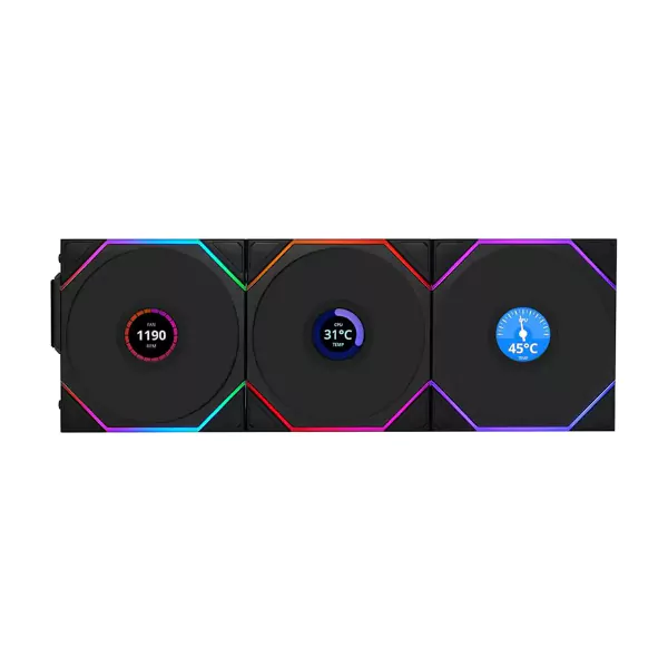نورپردازی ARGB و نمایشگر LCD فن کیس لیان لی UNI FAN TL120 LCD Wireless